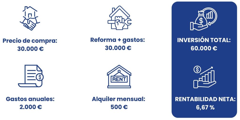 En este caso, la rentabilidad neta es el 6,67 % y el impacto social, medible y real: una familia instalada en un pueblo riojano con un alquiler asequible de 500 €.
