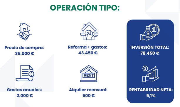 En este caso, la rentabilidad neta es el 6,67 % y el impacto social, medible y real: una familia instalada en un pueblo riojano con un alquiler asequible de 500 €.
